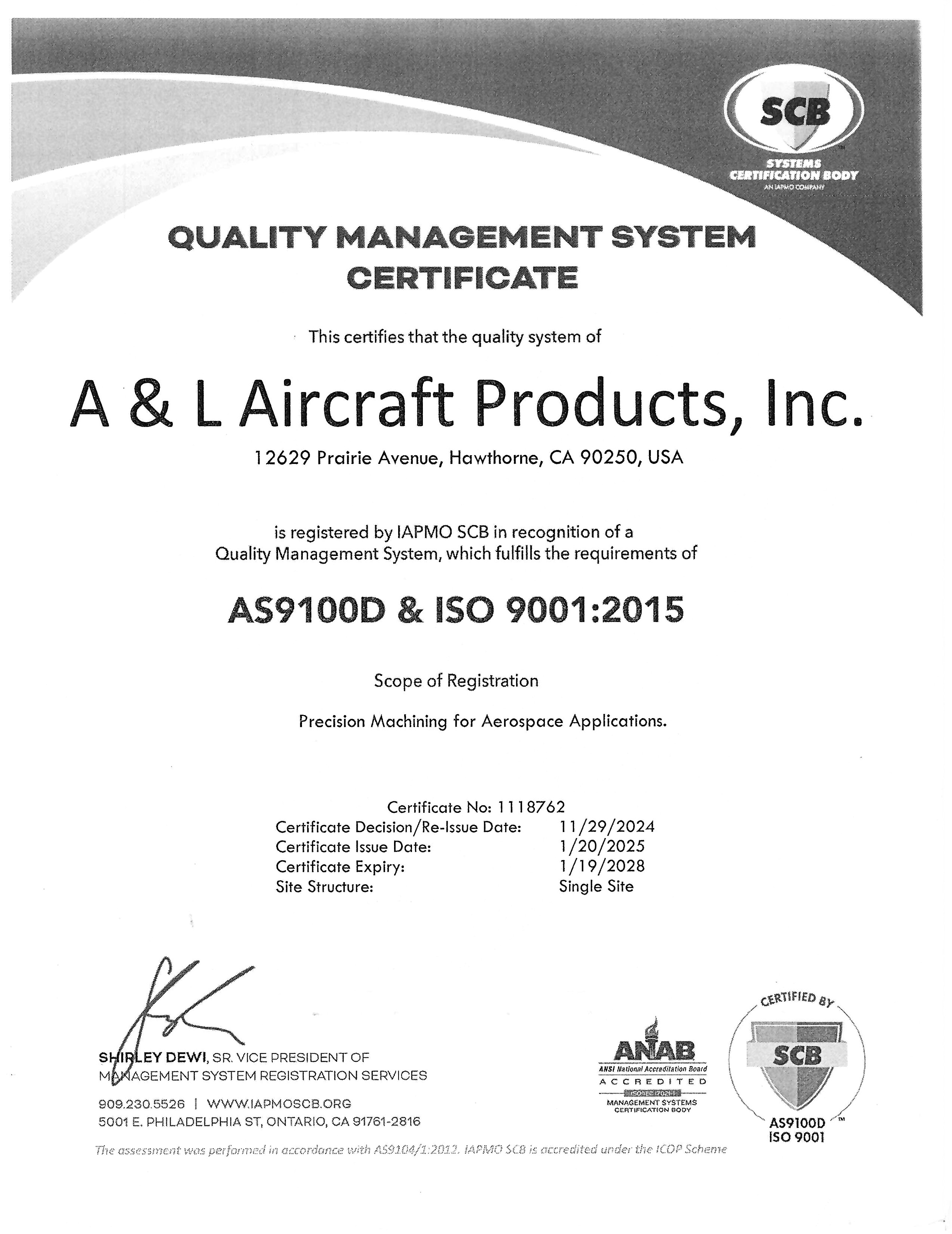 ISO 9001:2015 and AS9100D Certificate